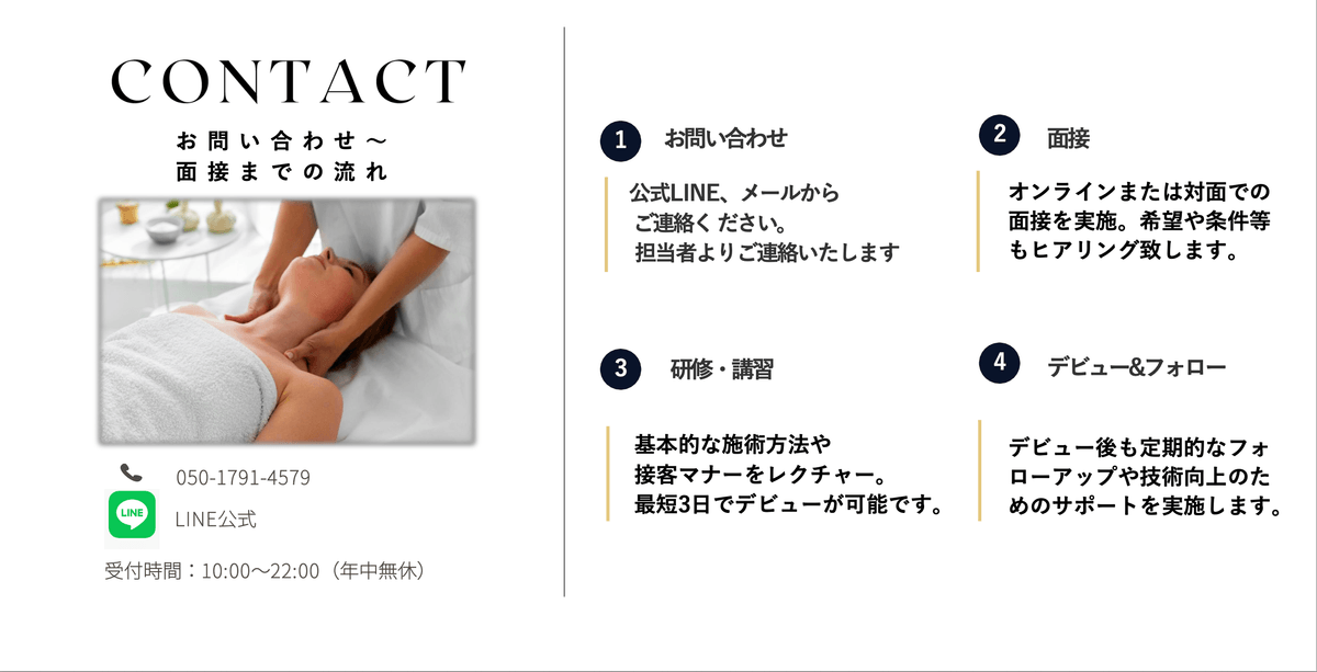 接客マナー/マッサージ技術/