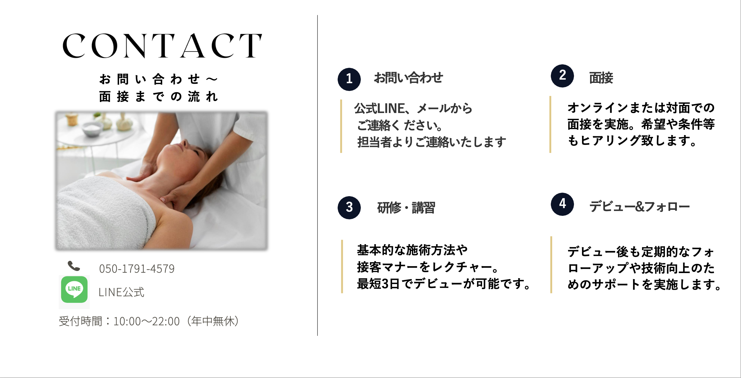私たちは「美しさ」と「癒し」をテーマに、ホテルやご自宅にいながら極上のリラックスタイムをご提供します。高級感あふれるサービスと徹底した衛生管理で、これまでにない上質な時間をお届けします。